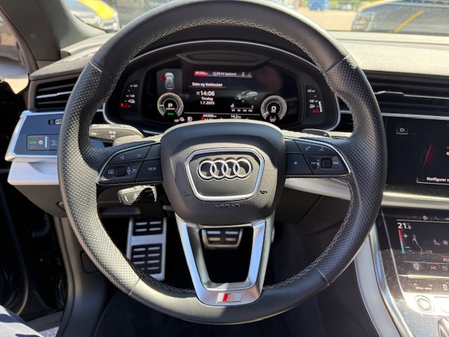 Eksklusiv og veludstyrede Audi Q8 55 TFSI e fra 2022, som kombinerer kraftfuld performance med økonomisk plug-in hybrid teknologi. Bilen fremstår i sublim stand, er passet og plejet, og leveres med alt tænkeligt udstyr.